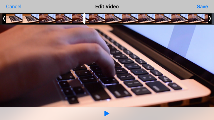 Note:The documentation mentions UIVideoEditorController"only supporting Portrait"orientations, but it seems to work fine in all orientations.